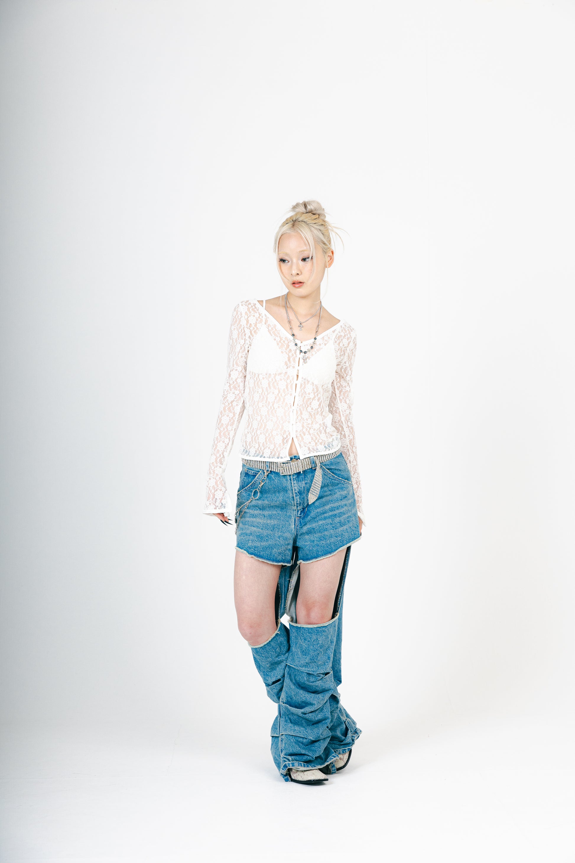 タイトなシルエットのトップスですので、ボトムスにはボリューム感のあるデニムパンツやカーゴパンツ、フレアパンツ、スカートなどが好相性◎