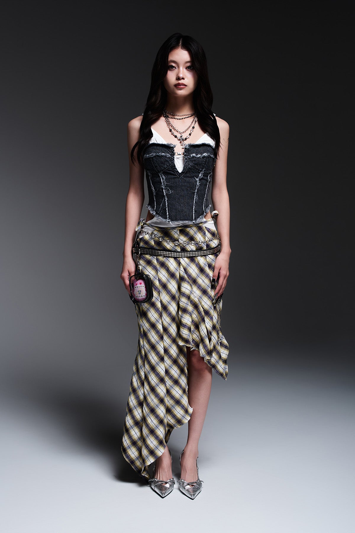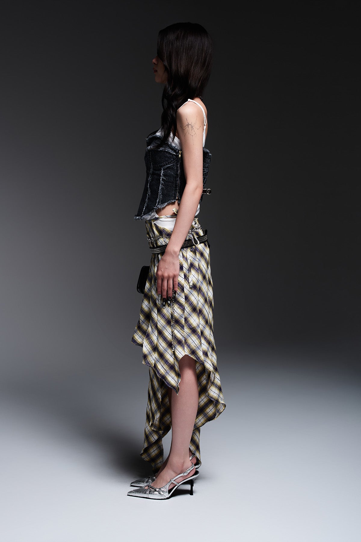 CHECK ASYMME SKIRT(NAVY✖️YELLOW)