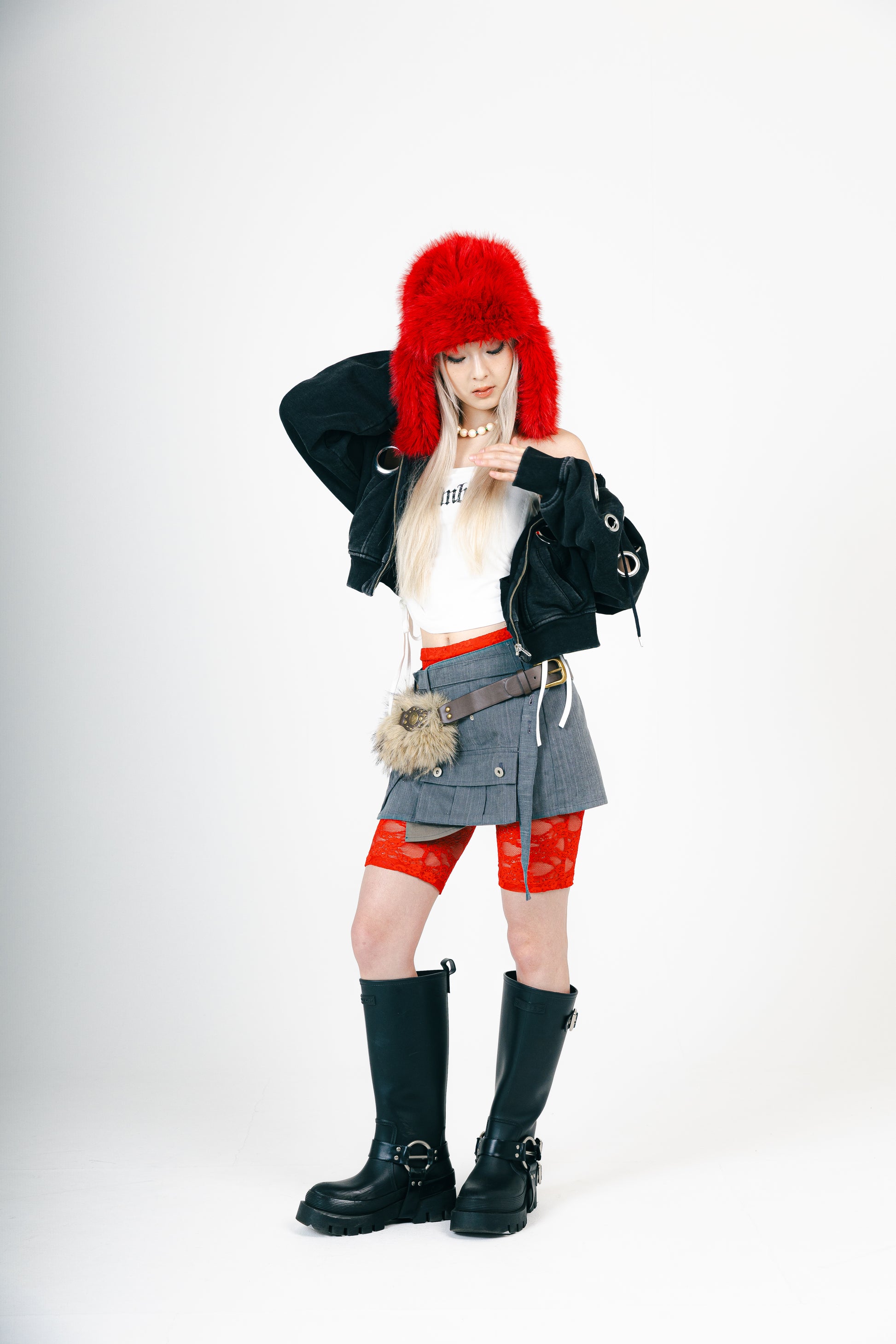 大きなアイレットから覗く肌や、インナーで遊び心のあるスタイリングでお楽しみください。
