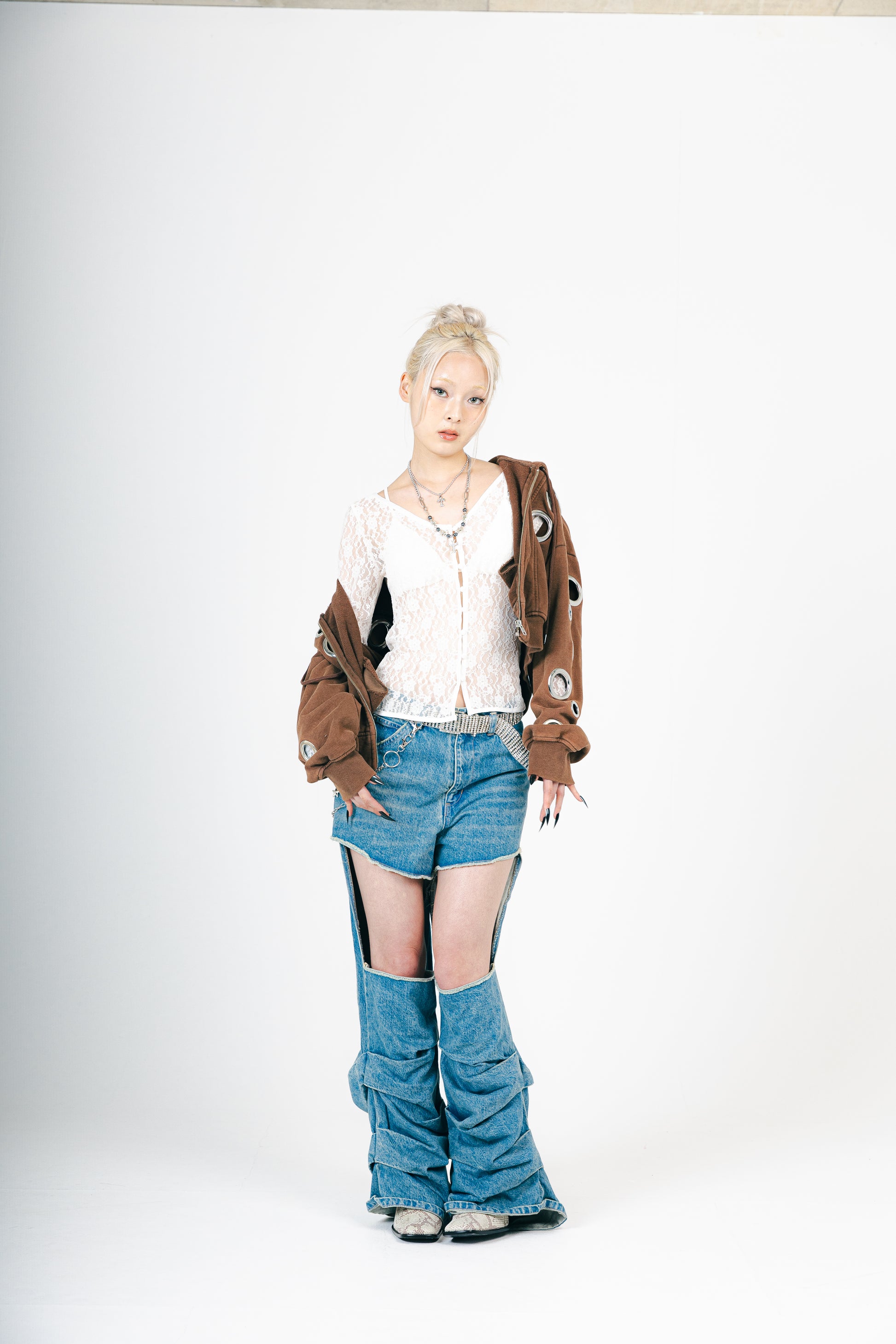 大きなアイレットから覗く肌や、インナーで遊び心のあるスタイリングでお楽しみください。